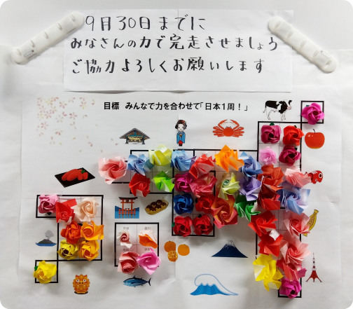利用者様それぞれが、前向きに目標にむかって自主トレに取り組まれ、日本1周スタンプ表をうめることが出来ました!